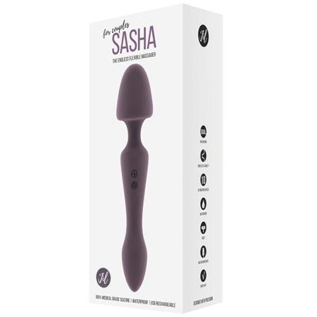 Silicone couples vibrator with two 10-speed USB rechargeable motors measures 8.85 in. long, 3.74 in. insertable 1.37 in. wide, 1.77 in. insertion width. Waterproof.