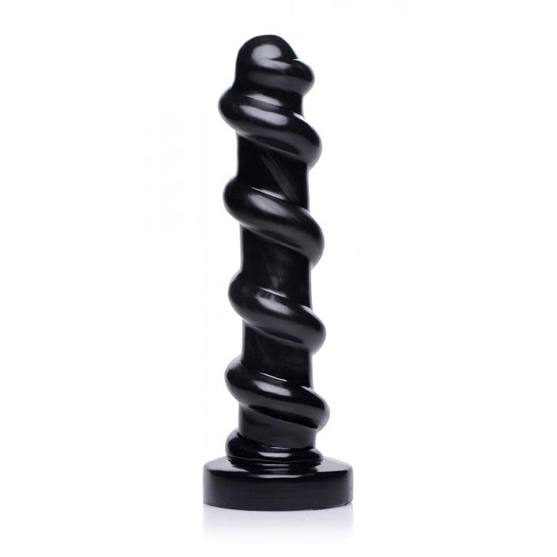 This massive black dildo is shaped to be drilled in for extreme pleasure. The firm, yet flexible PVC material will feel unbelievable as you turn it while pushing, feeling the shaft and rounded ridge enter inch by inch. A suction cup base makes it perfect for solo use for use with a partner. Measures 12.5 in. long, 11.25 in. insertable, 3 in. diameter.