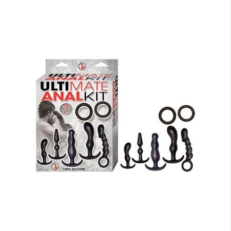 Ultimate Anal Kit 2 Cock Rings 5 Anal Plugs Black