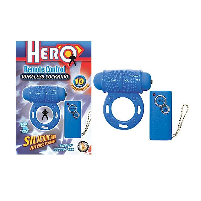 Hero Remote Wireless Cockring (Blue)We could all use a hero! 10 functionswith a smooth velvet feel. Waterproof for fun anywhere!Length: 2.5", Diameter: 1.875". Silicone. Phthalates free. 2 LR44 batteries included (bullet). 1 - 12V battery included (remote).