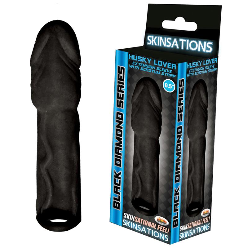 Skinsations Black Diamond Series Husky Lover Extension Sleeve With Scrotum Strap 6.5in