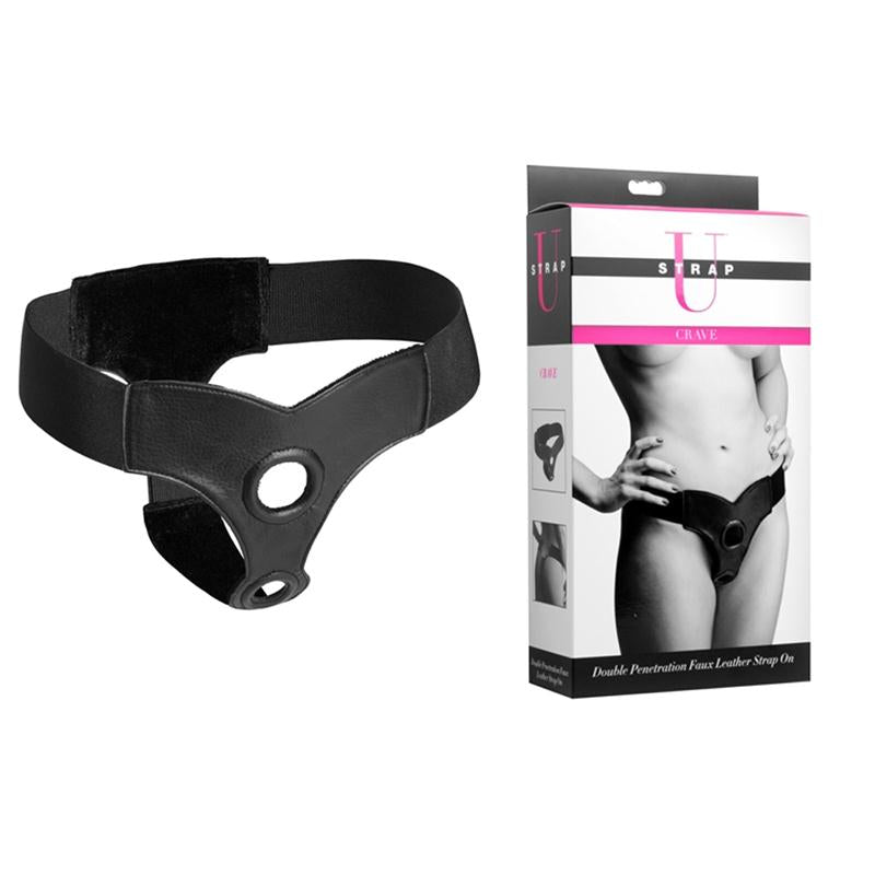Strap U Crave Double Penetration Faux Leather Strap On (Black)